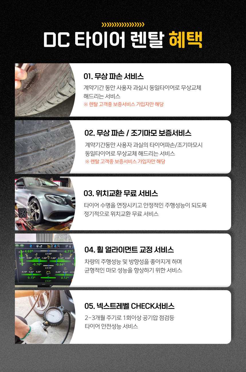 ○ 타이어 장착, 얼라인먼트 및 계약 (신분증 지참)